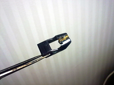 This stylus has elliptical tip and black body.