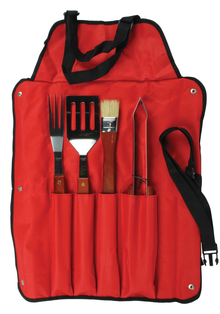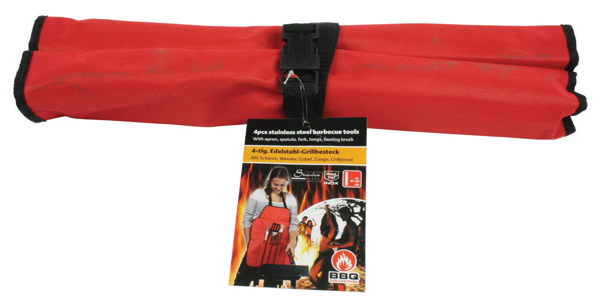 Grill kjøtt, fisk og vegetariske retter med dette grillsettet. Settet er laget av rustfritt stål og levereres med et elegant forkle.
