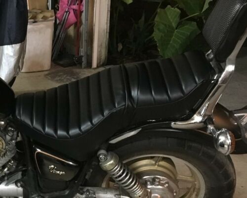 THIS IS A CUSTOM HAND MADE QUALITY SOFT VINYL BLACK SEAT COVER FOR YAMAHA XV 1000 VIRAGO 1984-1987. THE COVER IS MADE FROM AN ORIGINAL SEAT COVER PATTERN.