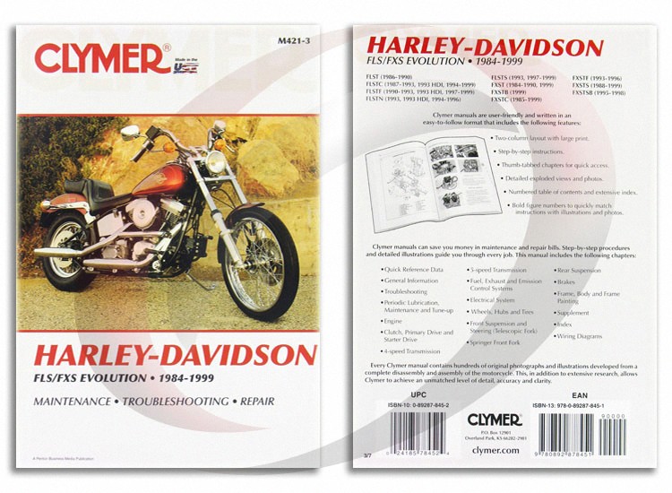 This service manual provides service, repair and maintenance information for 1984-1999 Harley-Davidson Softail Big-Twin Evolution FXST, 1984-1999 Harley-Davidson Softail Big-Twin Evolution FXSTC, 1984-1999 Harley-Davidson Softail Big-Twin Evolution FXSTS, 1984-1999 Harley-Davidson Softail Big-Twin Evolution FLST, 1984-1999 Harley-Davidson Softail Big-Twin Evolution FLSTC and 1984-1999 Harley-Davidson Softail Big-Twin Evolution FLSTF models.